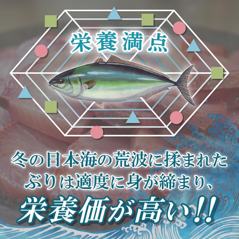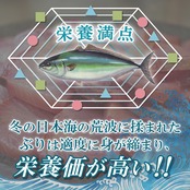 冬の日本海の荒波に揉まれ、適度に身が締まり栄養と脂肪をたっぷりと蓄えたこの時期のぶりが「寒ぶり」です。